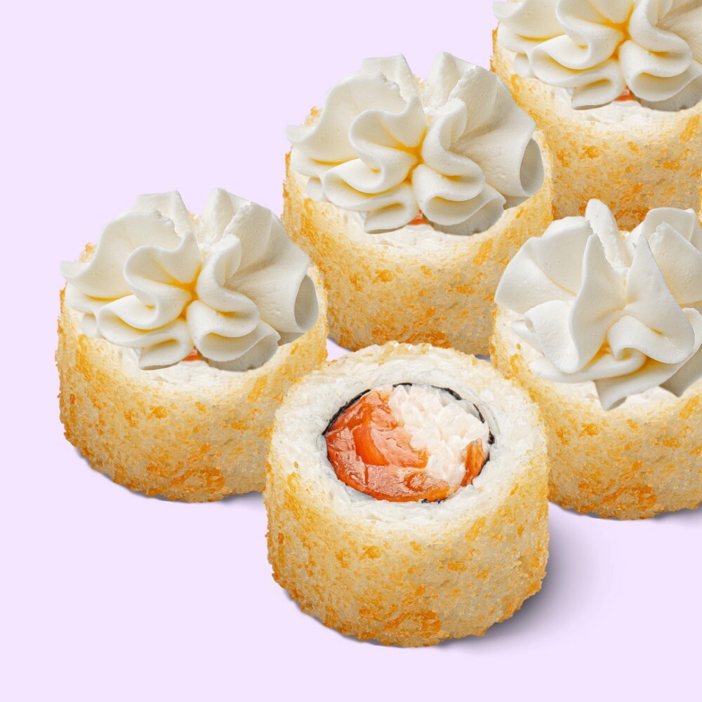 Рис, мицукан, сахар, комбу, соль, нори, лосось, снежный краб, мука, яйцо, сухари панировочные, сыр сливочный